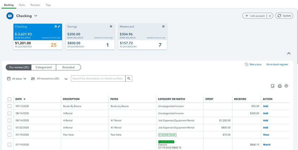QuickBooks Online automatically pulls in data from your bank and credit card accounts, allowing you to seamlessly track your income, expenses, and reduce data entry errors. Over time, it learns from your behavior and can even classify transactions for you automatically. If your customers pay you through Intuit Payments, QuickBooks will sync, record, and automatically match them for you as well.